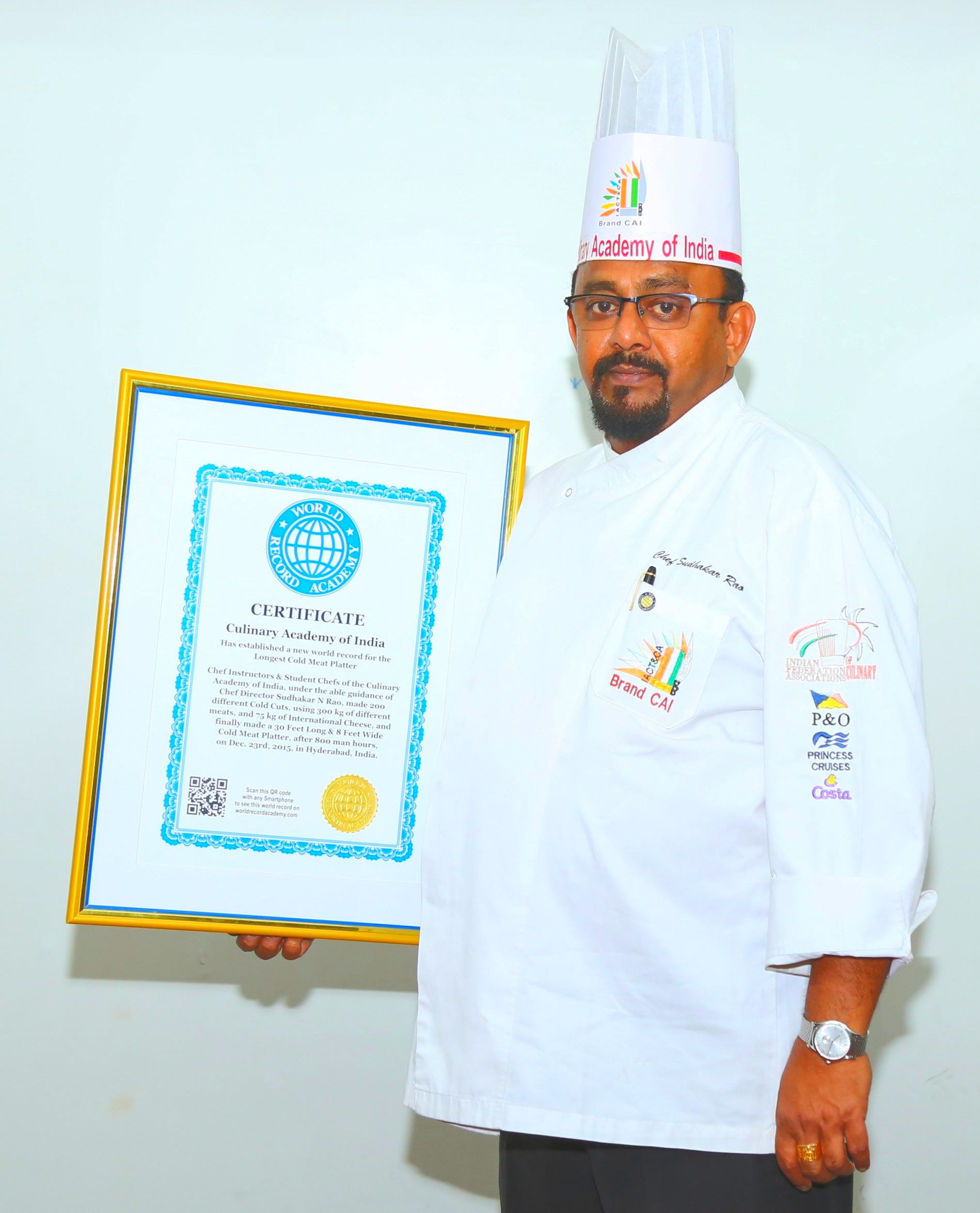 "We have been working with WORLD RECORD ACADEMY since 2015 and we hold Three world records ( Longest Cold Meat Platter, Most different cakes displayed, Tallest Christmas cupcake tree), with them," says Sudhkar N Rao, Culinary Academy of India.