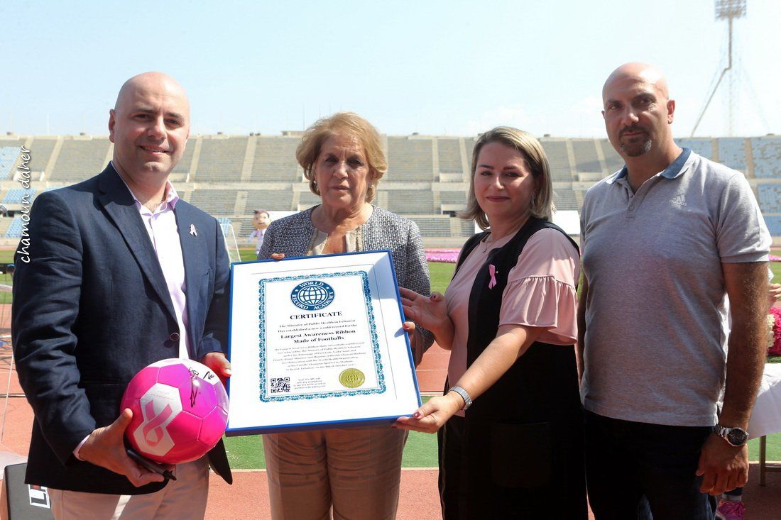 Largest Awareness Ribbon Made of Footballs world record: Lebanon