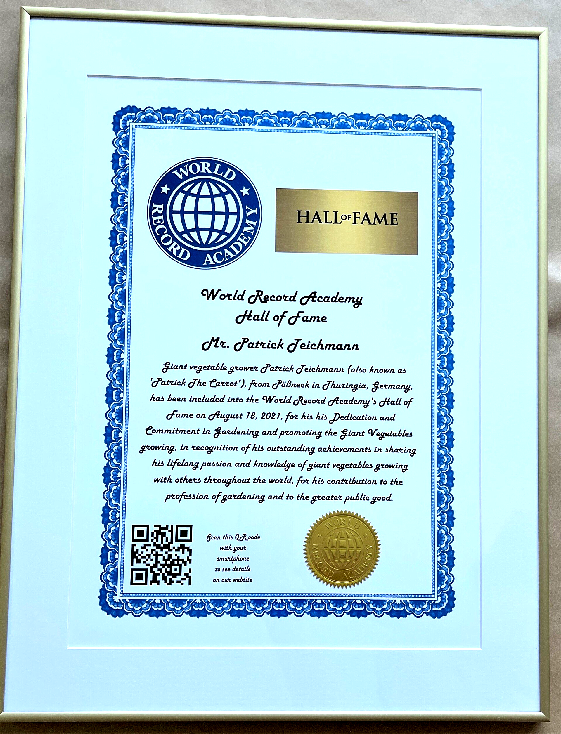 Patrick Teichmann: "Many friends have congratulated me. The media liked to take up the topic because it is something special and a great honor as a small German grower to get a world record from the World Record Academy from Miami, United States.