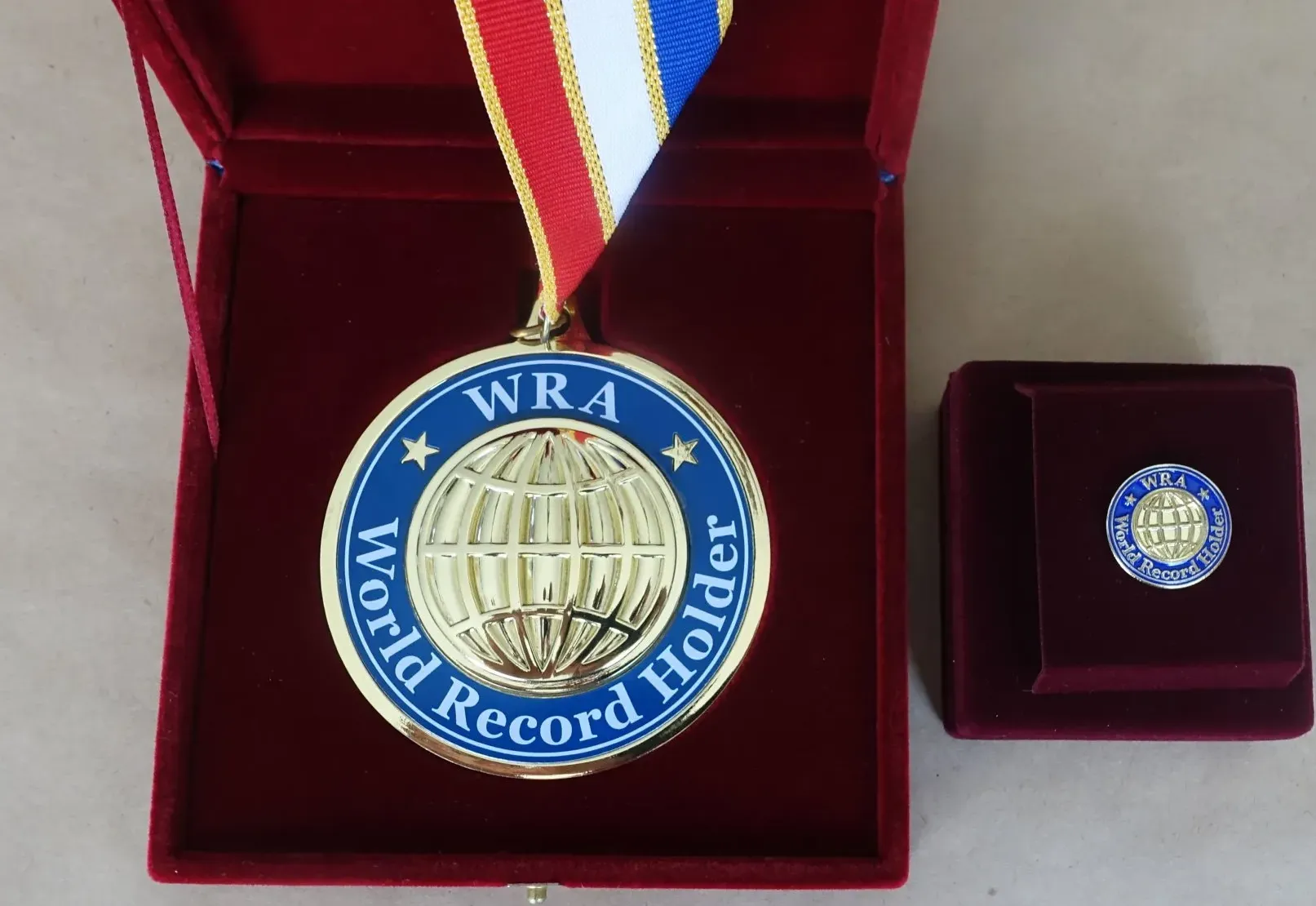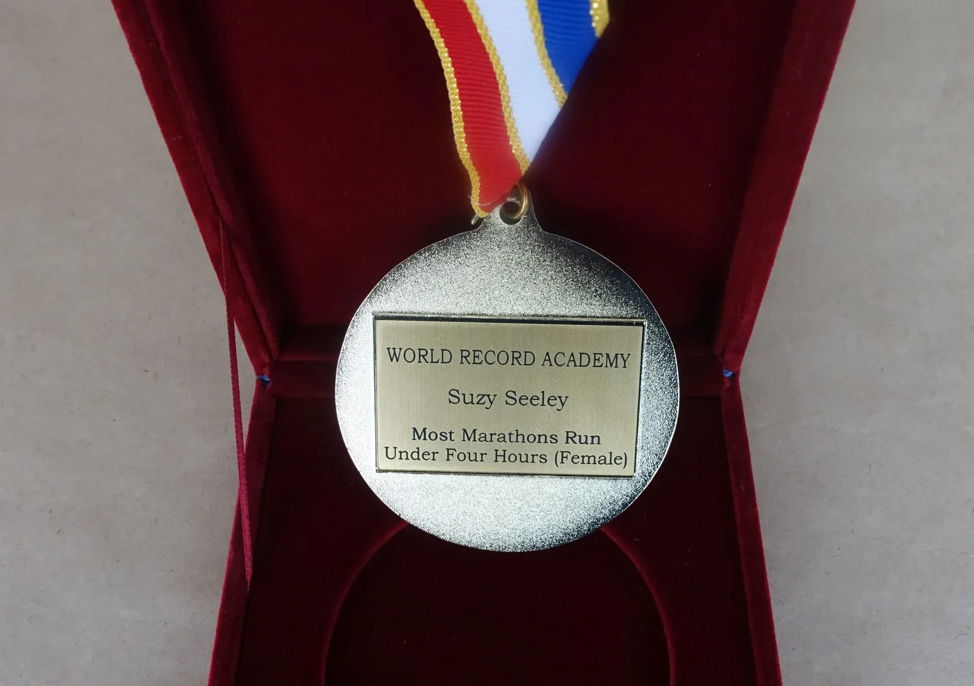 Suzy Seeley: "I received my World Record Academy Certificate and medal/pin and was truly thrilled to open it!"