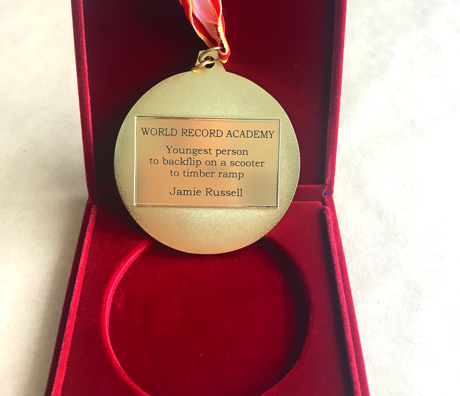 Artarmon, New South Wales, Australia--Two-time world record holder and Hall of Fame inductee Jamie Russell (DOB 21/2/2012) of North Rothbury, NSW Australia, who managed to set the world records for the Youngest person to backflip on a scooter to a timber ramp and for the Youngest person to back flip a scooter on an X Games ramp, earned the World Record Academy's "Young Athlete of the Year" honor, for his outstanding performances, Sportsmanship, effort, attitude, overall athletic achievements, motivation and dedication to the sport.